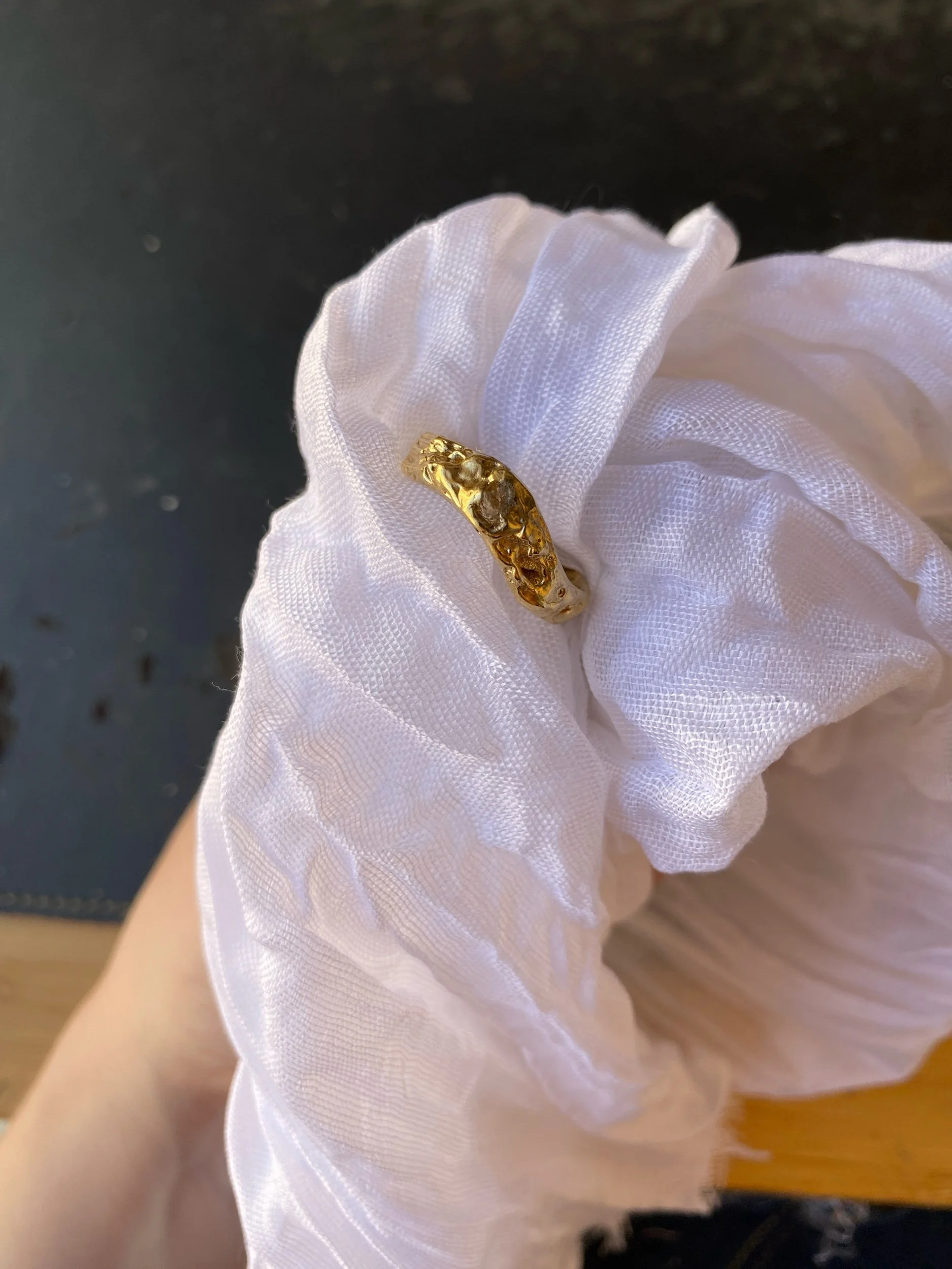 Finitions, sertissage de la pierre et placage or (si choisi), avant expédition. Dès votre bague finie, vous recevrez un mail avec le numéro de suivi.