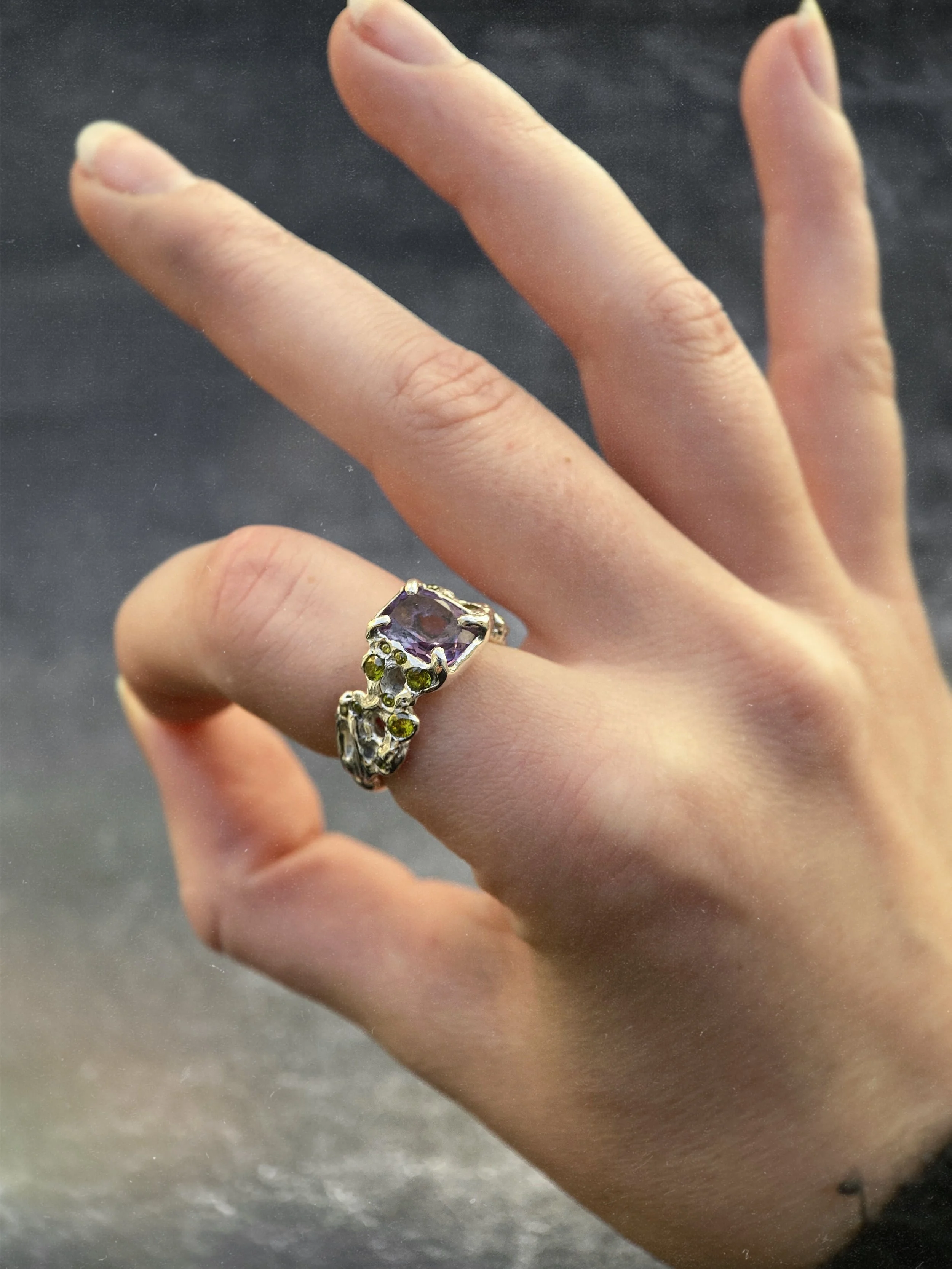 Améthyste violette et péridot naturelles