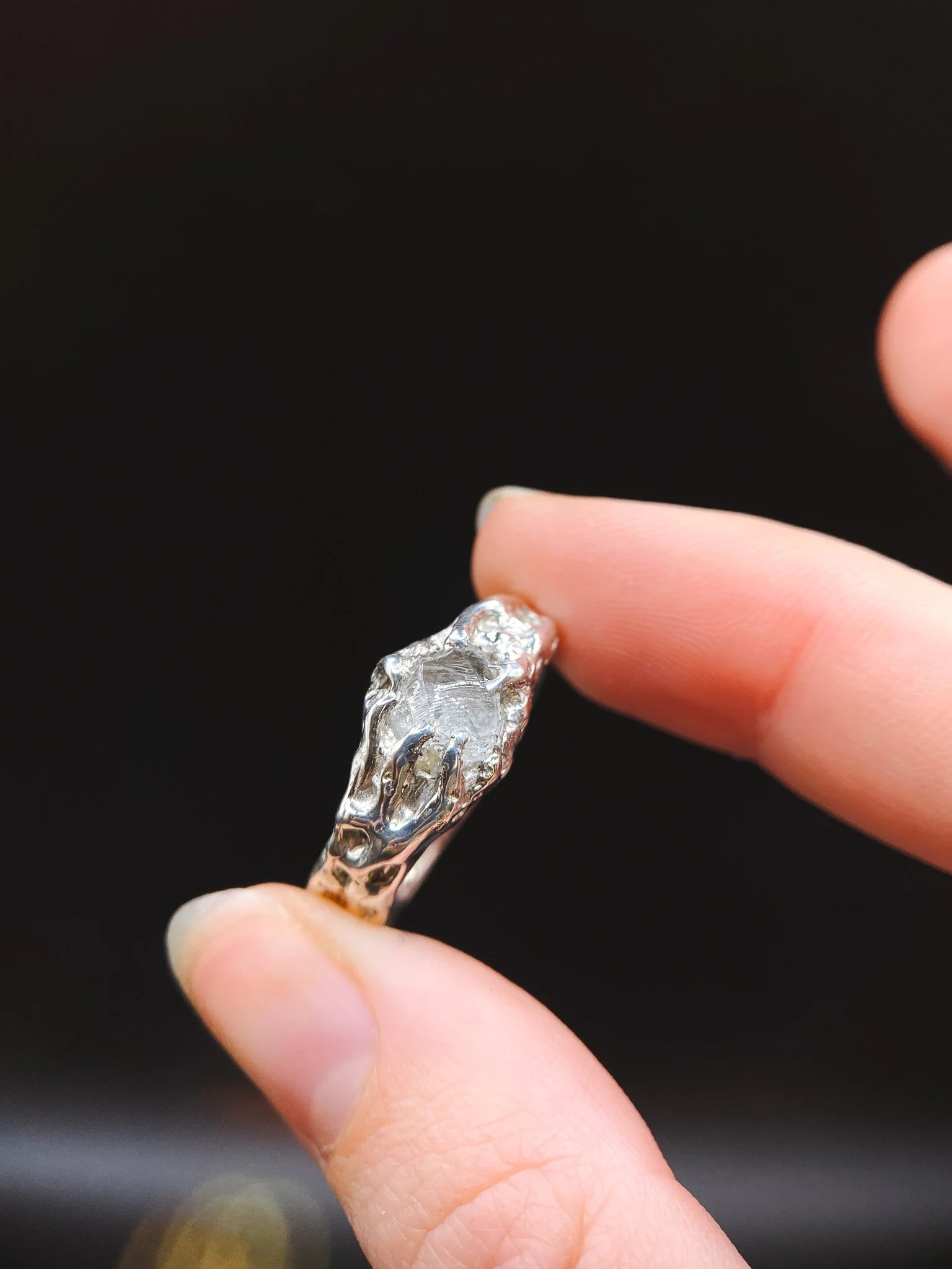 Bague texturée brute en argent 925
