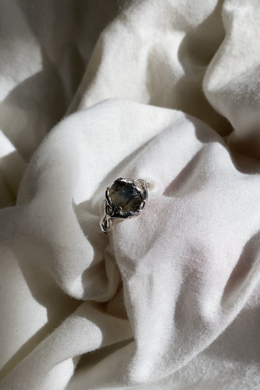 Bague sur-mesure, labradorite brute, argent 925